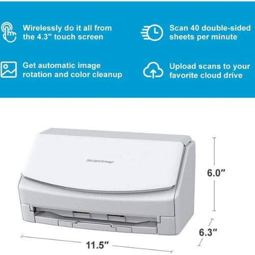 ScanSnap iX1600 is the evolved flagship model of the ScanSnap series, enabling scanning at higher speeds of 40 ppm/80 ipm (A4-size documents, color, 300dpi). It comes with the all-familiar 4.3-inch touch screen to bridge the gap where the physical and digital meets. The device comes with Wi-Fi connectivity, making it the perfect model for team sharing and combined use with cloud services.