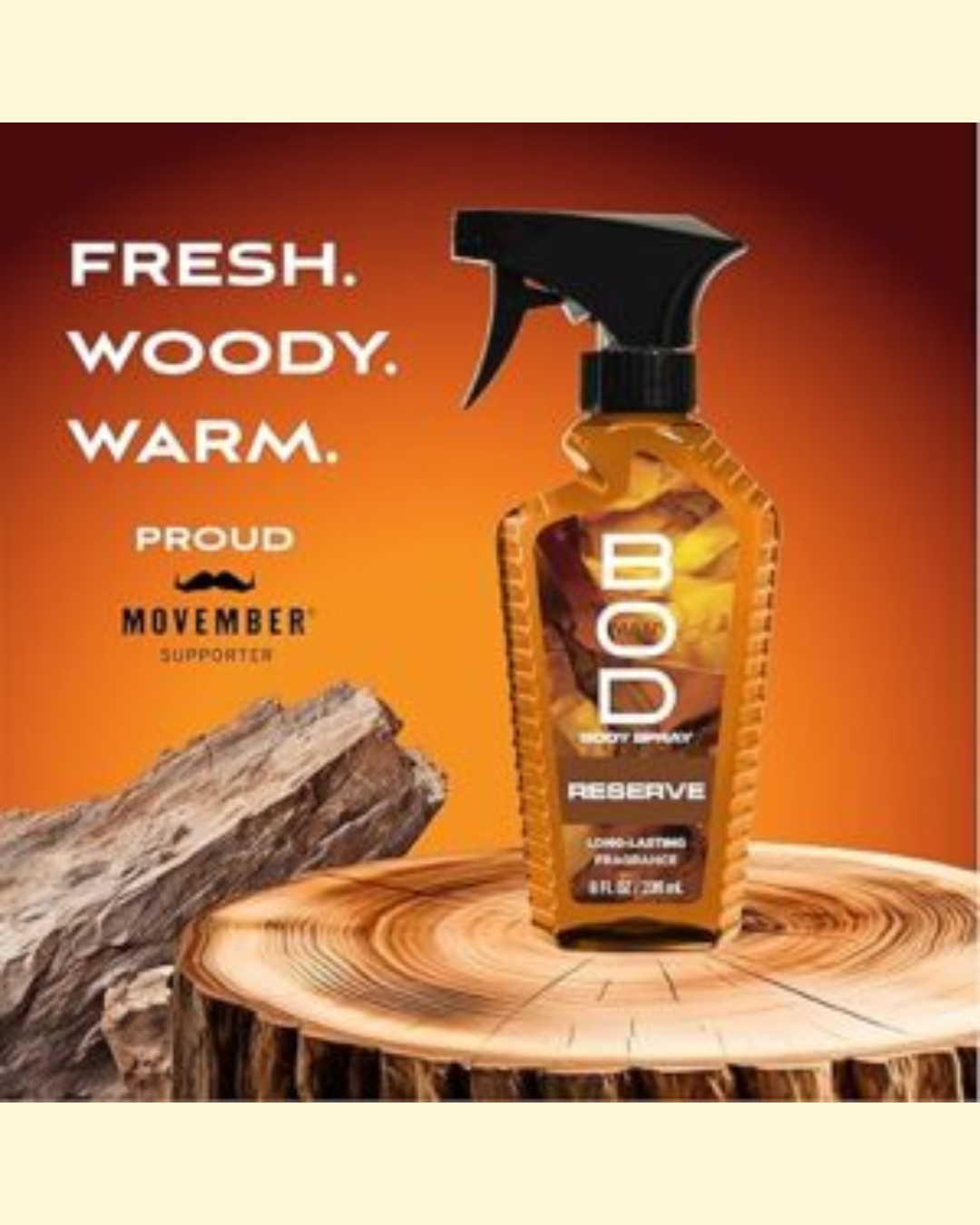 Like the first sip of a fine bourbon, the BOD Man Reserve Fragrance Body Spray offers a sensory experience for the refined man. The top notes are defined by their freshness with Italian lemon, mint, and crisp apple at the forefront. Richer notes such as aged oak, tonka bean, and a hint of geranium define the secondary notes while the warm scents of vanilla bean, vetiver and bourbon make up the base of this layered fragrance. This scent is perfect for you.