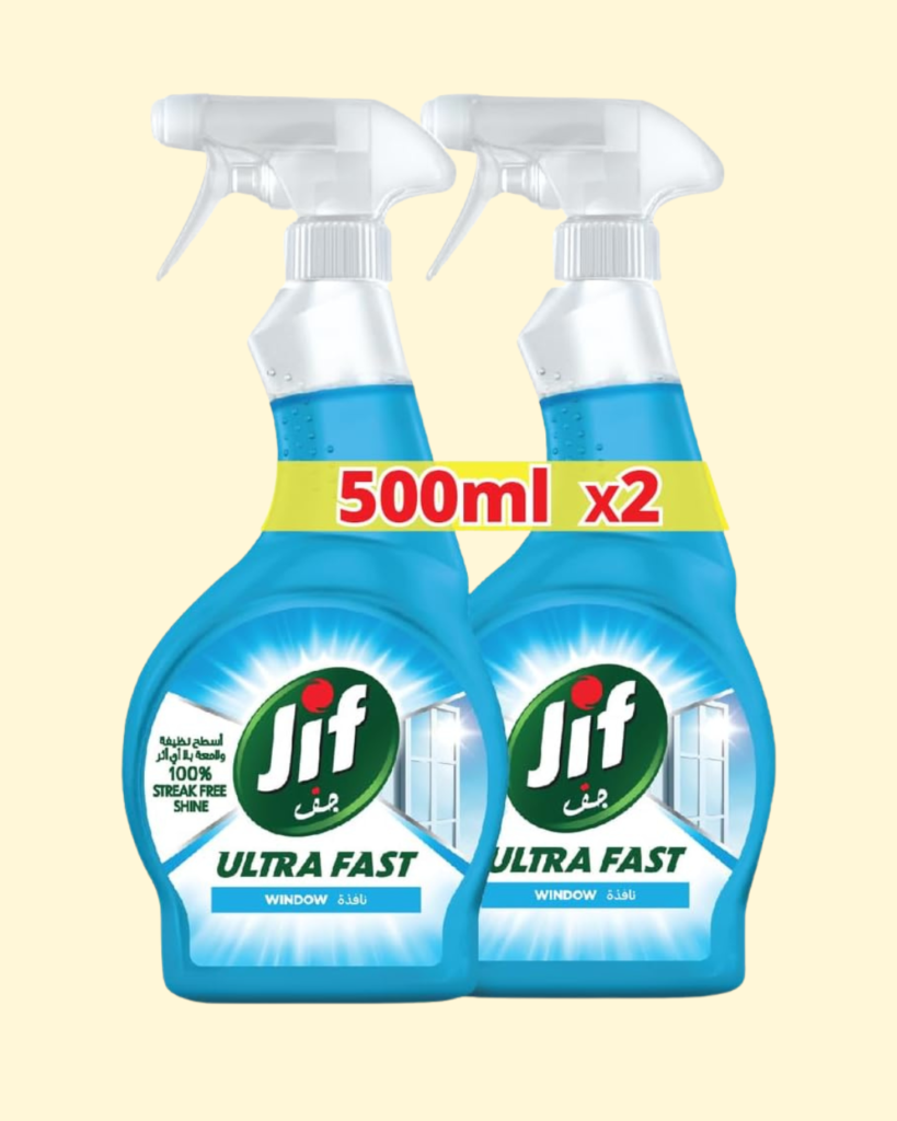 JIF Ultra Fast Cleaner Spray, Removes dirt & marks, for Window, Fast & easy clean just in 10 seconds, 2 x 500ml