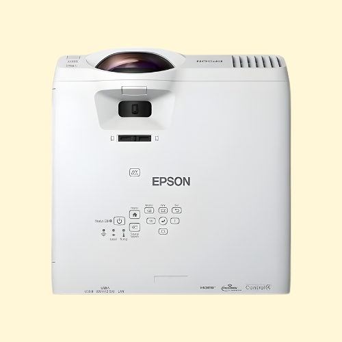 The Epson EB-L210SW is a powerful short-throw laser projector, designed for small spaces while delivering exceptional image quality and reduced shadow cast into display. With 4,000 lumens of brightness, 3LCD technology and WXGA 2 resolution, it projects crisp and vibrant visuals, even in brightly lit environments. This projector supports up to 120-inch display size from a short distance and product large display up to 125 inch making it perfect for classrooms, meeting rooms, or retail spaces.