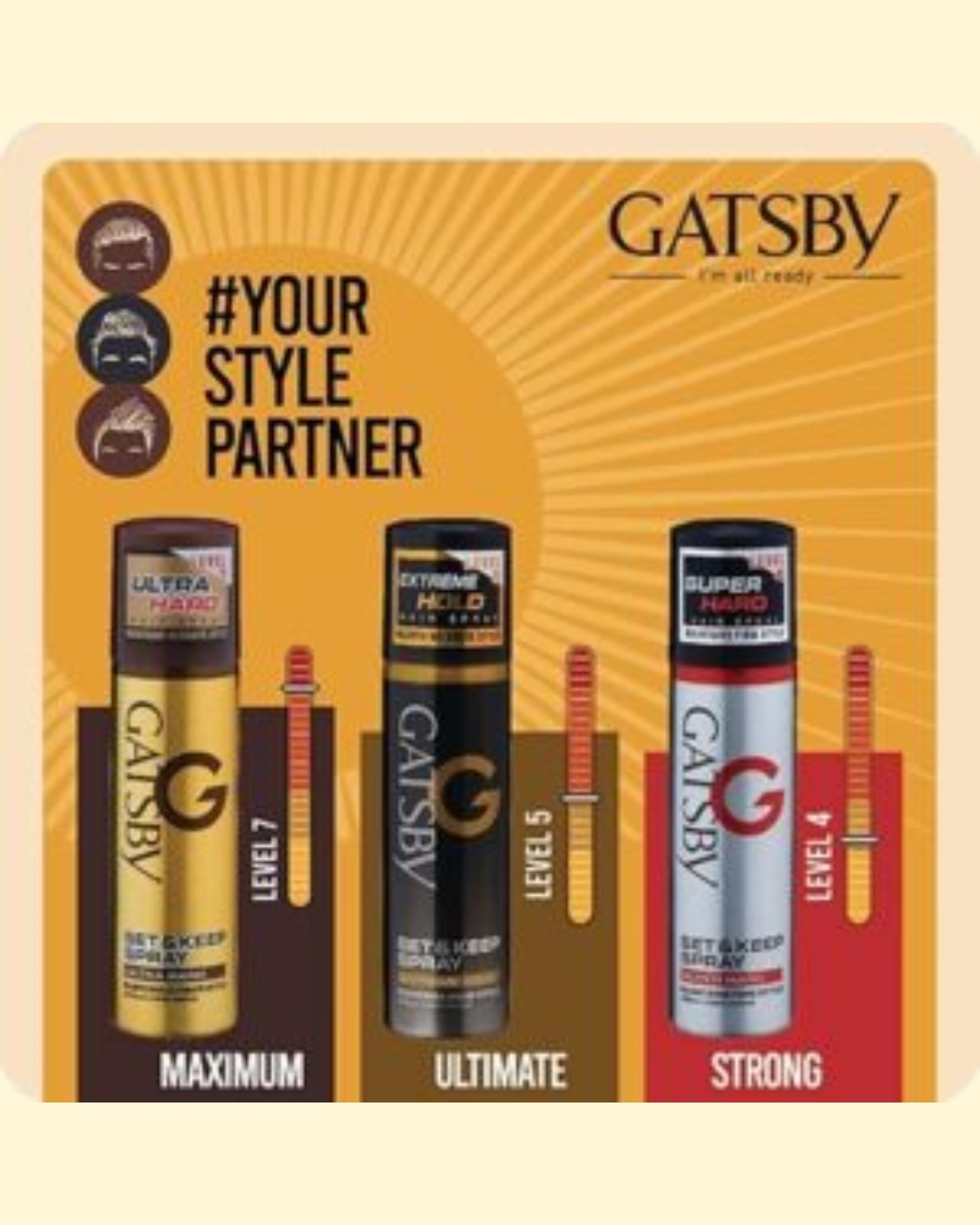 Gatsby Set & Keep Spray with Level 7 hold. Maintains Ultimate Style.