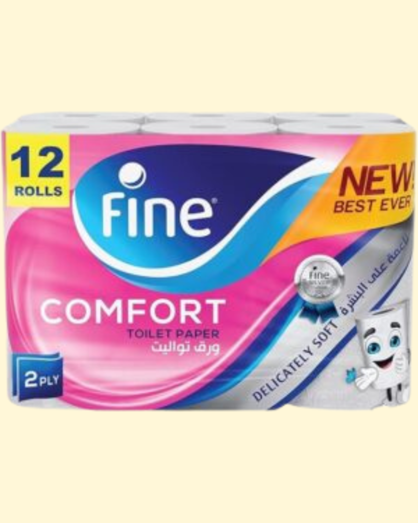 Fine Comfort Toilet Tissues Paper 12 Rolls, 180 sheets x 2 Ply