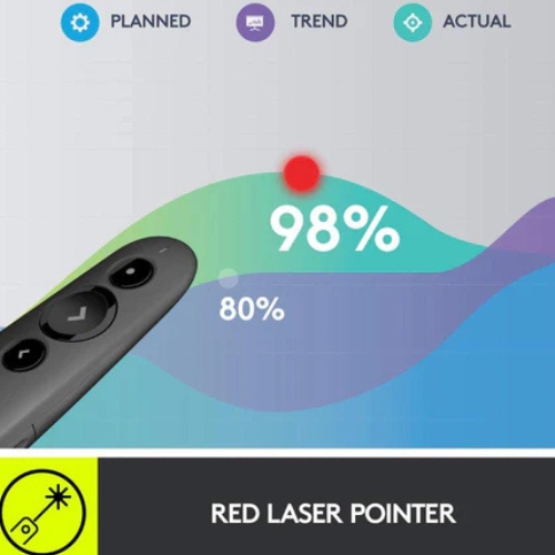 The Logitech R500s is engineered to let you focus on what matters most: your message. Designed for simplicity and reliability, this remote features an unmistakable three-button layout. The intuitive placement allows you to navigate slides forward, backward, and trigger the laser pointer entirely by touch, so you never have to look down and break eye contact with your audience. Its bright red laser pointer provides a sharp point of focus, making it easy to highlight key data on projector screens and flipcharts.