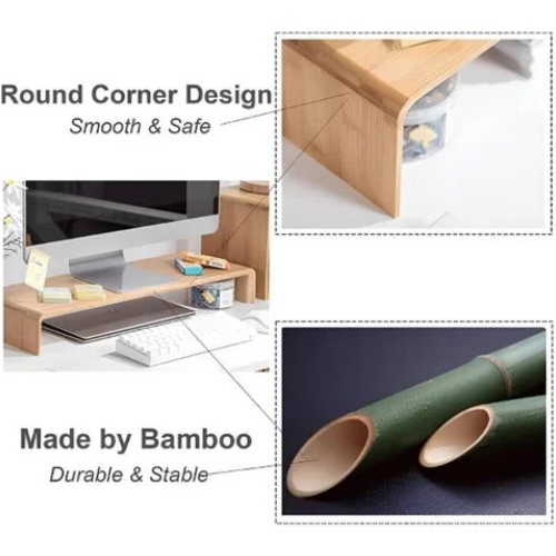 Sustainable Bamboo Construction: Made from natural, renewable bamboo for a sturdy, environmentally conscious design that adds warmth and elegance to your desk.