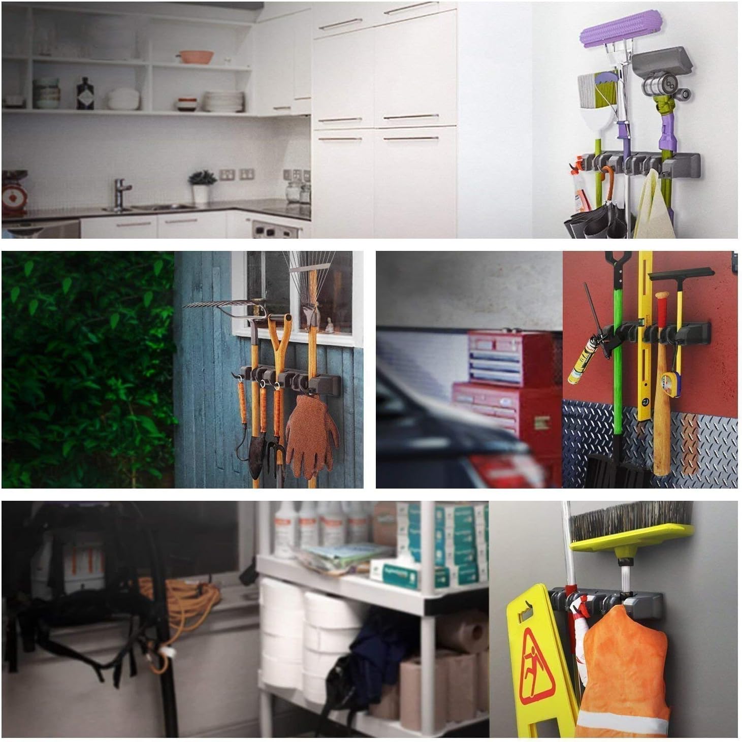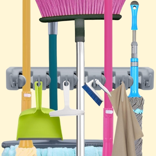 - Multifunctional: wall mounted for space-saving,waterproof,sturdy,long service life and non-slip. Wall mounted mop and broom holder provide a solution to clean and organize your kitchen,garage, etc