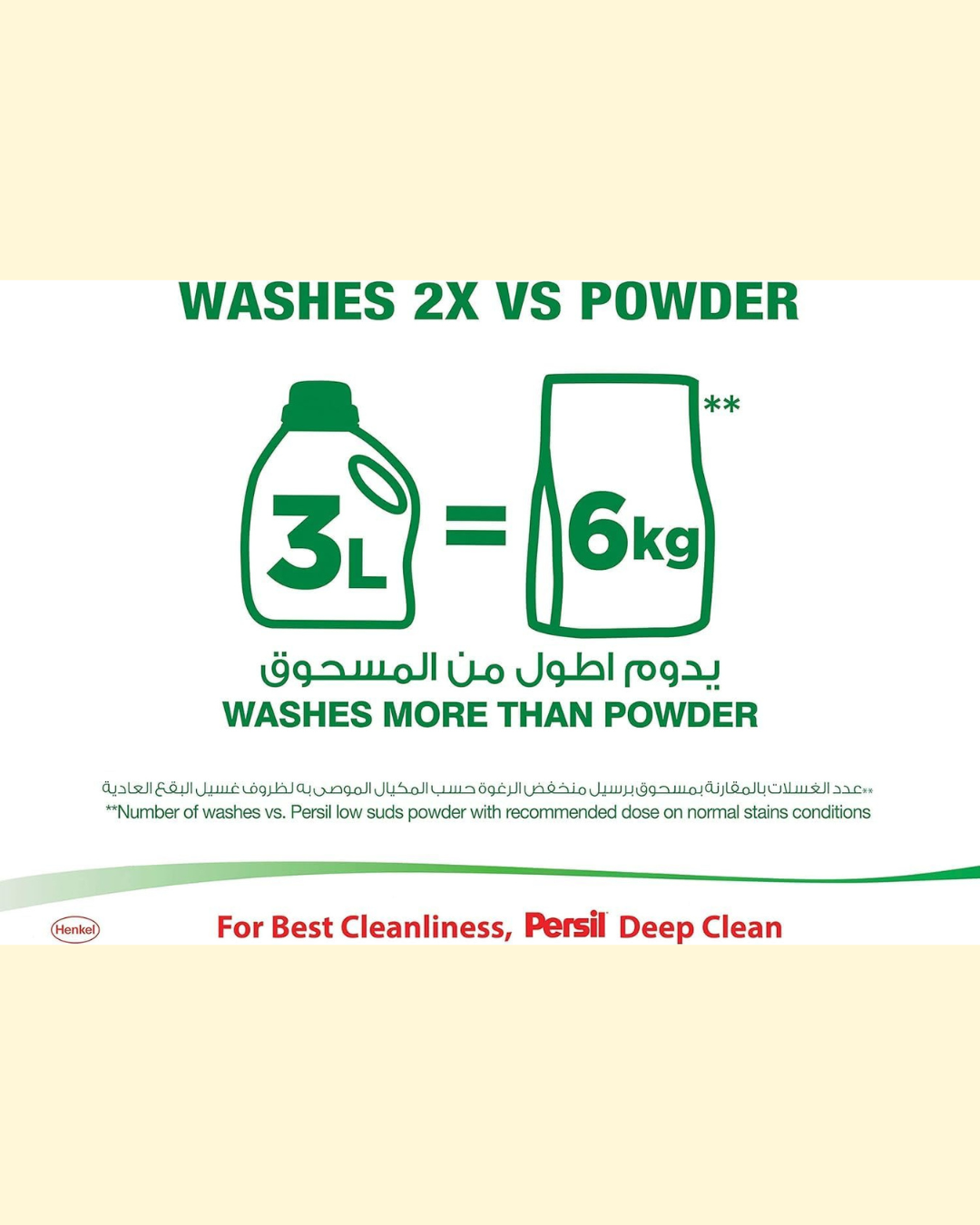 Persil power gel lavender liquid laundry detergent is a complete replacement for any powder detergent. Deep clean technology for front loading washing machines. Persil penetrates deep into the fiber to powerfully remove even the most stubborn stains without pretreatment or soaking. Persil penetrates deep into the fiber to powerfully remove even the most stubborn stains without pretreatment or soaking. Persil provides a pleasant, long-lasting freshness for your clothes. Liquid detergents provide twice the wash loads versus powder detergents. 3L Persil Gel is equal to 6KG of powders. Optimum fibre protection: for long-preservation of your fabrics, liquid detergents do not harm the fabrics and do not leave behind any residues. Persil prevents greying on your fabrics wash after wash for brighter looking clothes.
