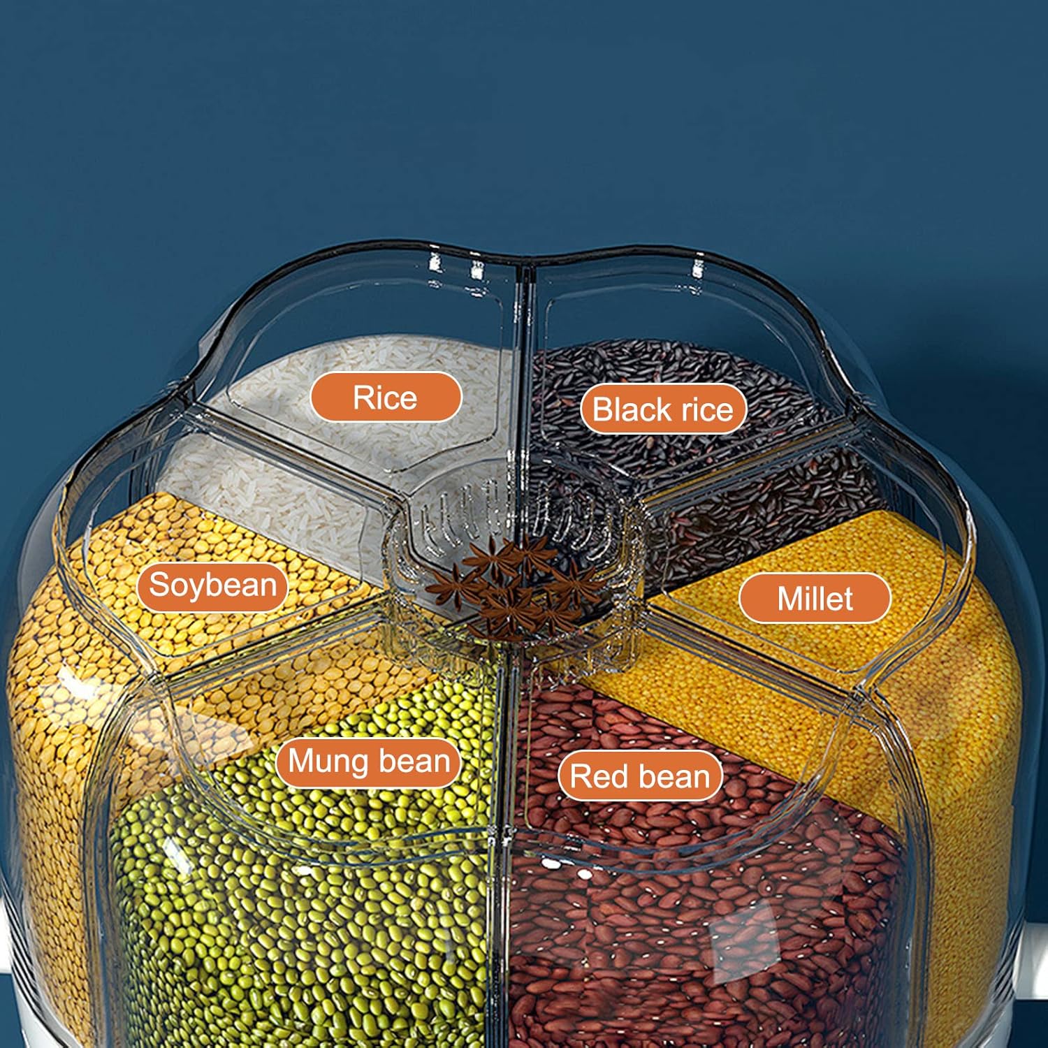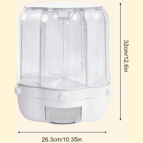 - 【360° Rotating Grain Dispenser】The grain container storage can be rotated 360 degree smoothly to see and get what slot items we need to get it to cook. Each slot has unique button to get the stored grains easily. Very easy to dispense and refill.