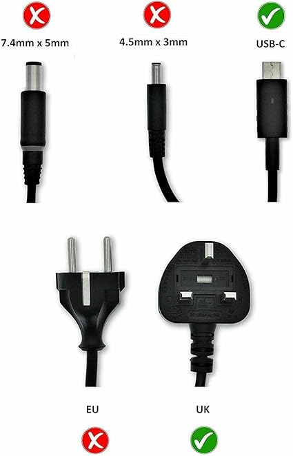 Dell Genuine Chromebook 3380 5190, Venue 5855 5056, Latitude 3380 3390 5285 5289 5290 7212 7275 7289 7370 7389 7390, XPS 9250 9365 65w USB-C Type-C Power Adapter Charger 450-AGOL 2YK0F M1WCF UK