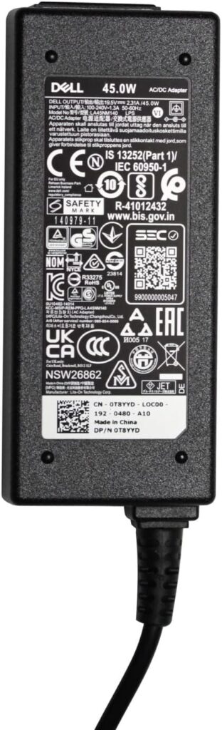 New Original Dell 19.5V 2.31A 45W Output Charger with 4.5mm X 3.0mm Pin Size. Laptop Adapter Battery Charger – Includes UK Power Cord. The device offers protection against incorrect mains voltage, short circuit and overheating. It can be used both to charge the batteries and to operate from the electricity socket. The part numbers of the devices supplied may differ from the part numbers of the devices that are provided as a reference.