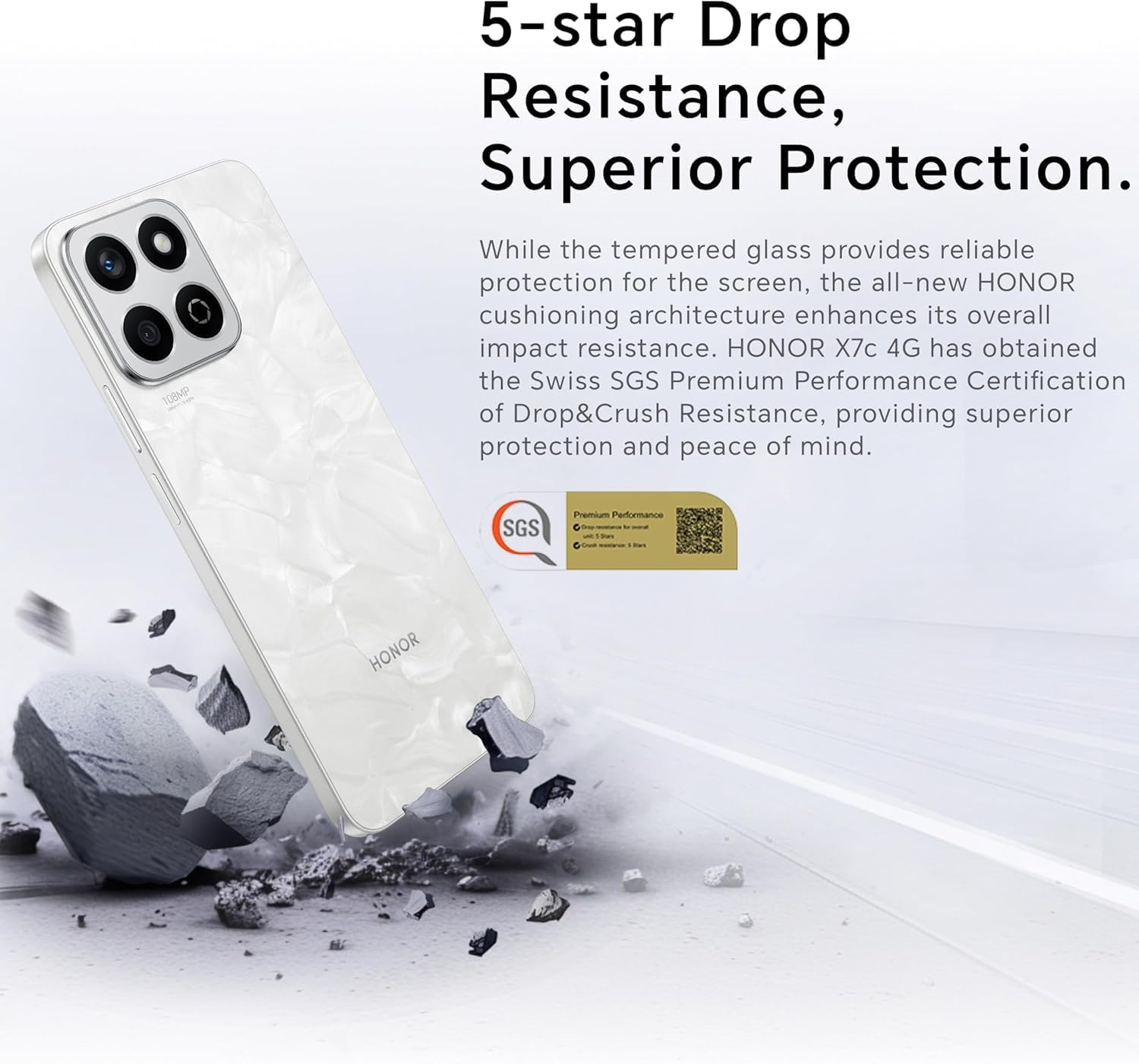 - [ULTRA-DURABLE & DROP-RESISTANT]: Built to last with a 5-star SGS drop resistance certification, the HONOR X7c 5G can handle accidental drops and everyday wear with ease.