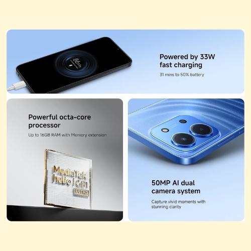 - [33W turbo charging] 33W turbo charging keeps you going without worries, striking a perfect balance between fast charging and long battery life. With reverse charging support, your phone becomes a portable power bank, ready to power up your devices anytime, anywhere