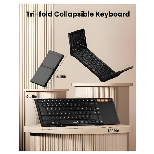 - Tri-Fold Design with Carry Case Folds into a compact size and includes a PU leather pouch and phone stand—ideal for travel, business trips, or minimalist setups.