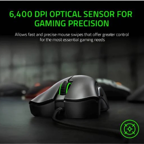 The Razer DeathAdder Essential is a high-performance wired gaming mouse designed for precision, durability, and comfort. Featuring a 6400 DPI optical sensor, mechanical switches, and rubber side grips, it delivers smooth and responsive gameplay for casual and competitive gamers alike.