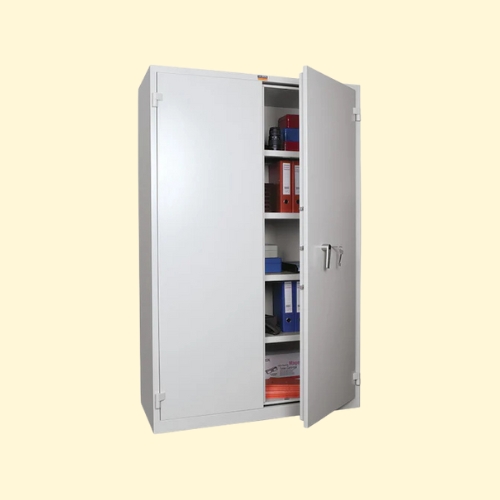 - Double wall construction, the gap between the inner and outer walls is filled with heat insulating material which protects the contents from fire